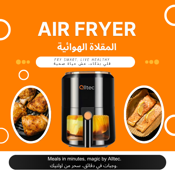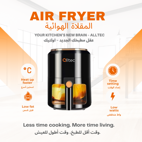 alltec Intelligent Air Fryer 7.5L with Glass Window – 1400W Oil-Free Digital Cooker-Black